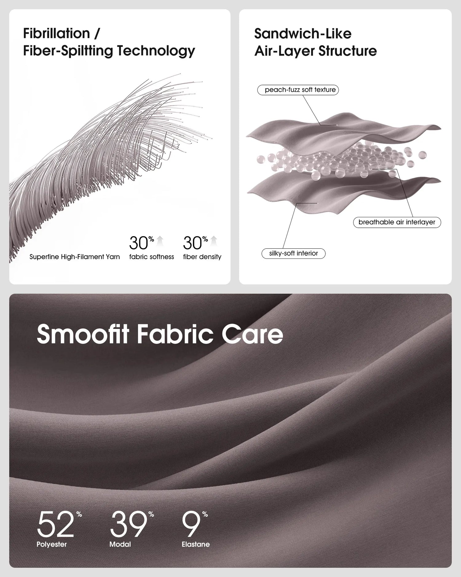 • Smoofit™ mid-weight fabric with silky smooth, peach-fuzz soft texture