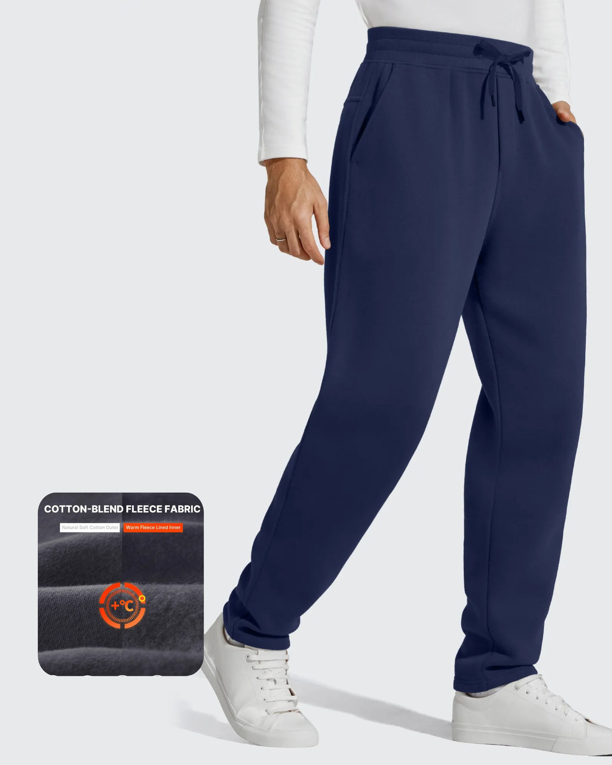 Fleece-lined cotton keeps you cozy and insulated without restricting motion.
