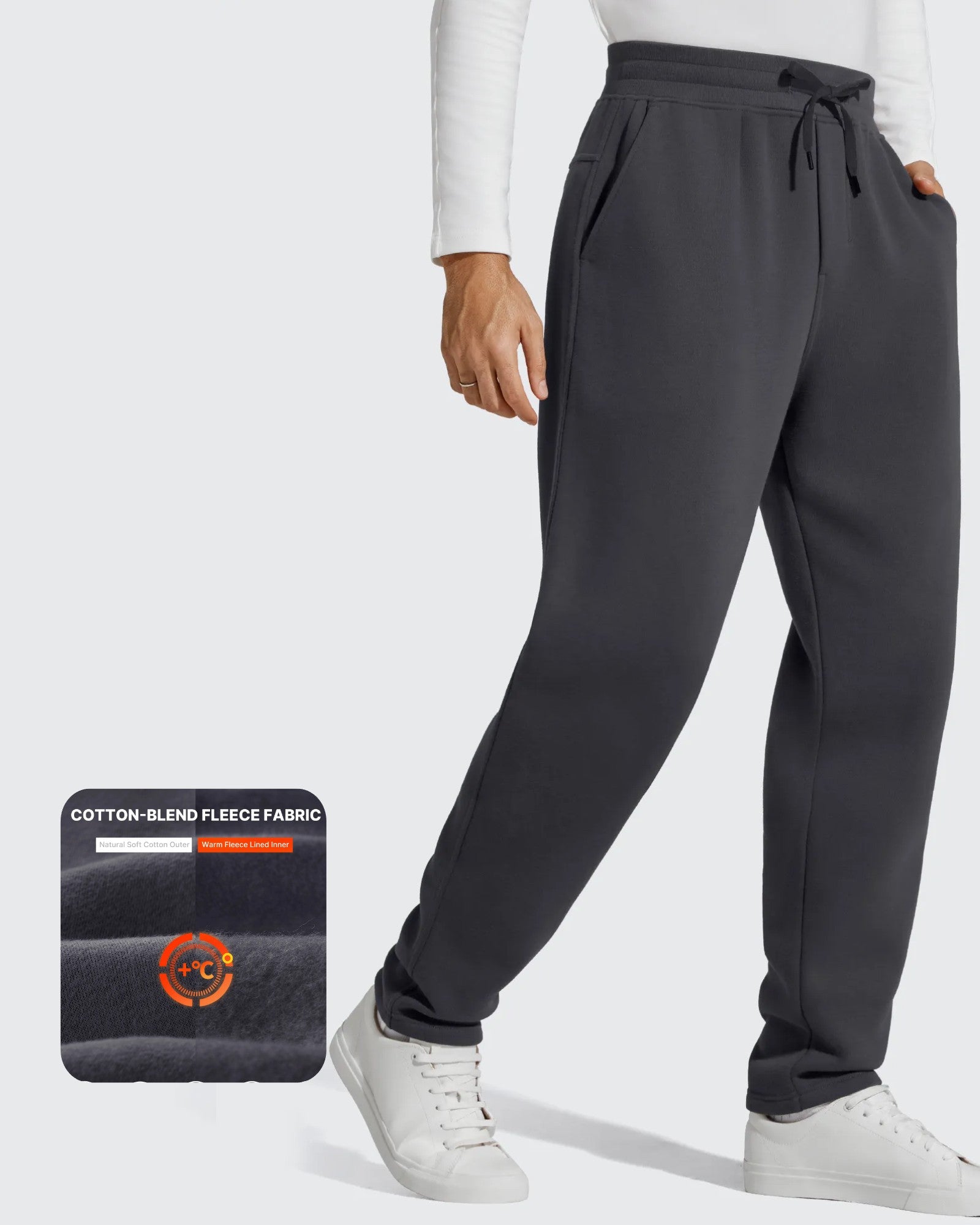 Flurrylux Men's Fleece-Lined Drawstring Cotton Straight Leg Pants