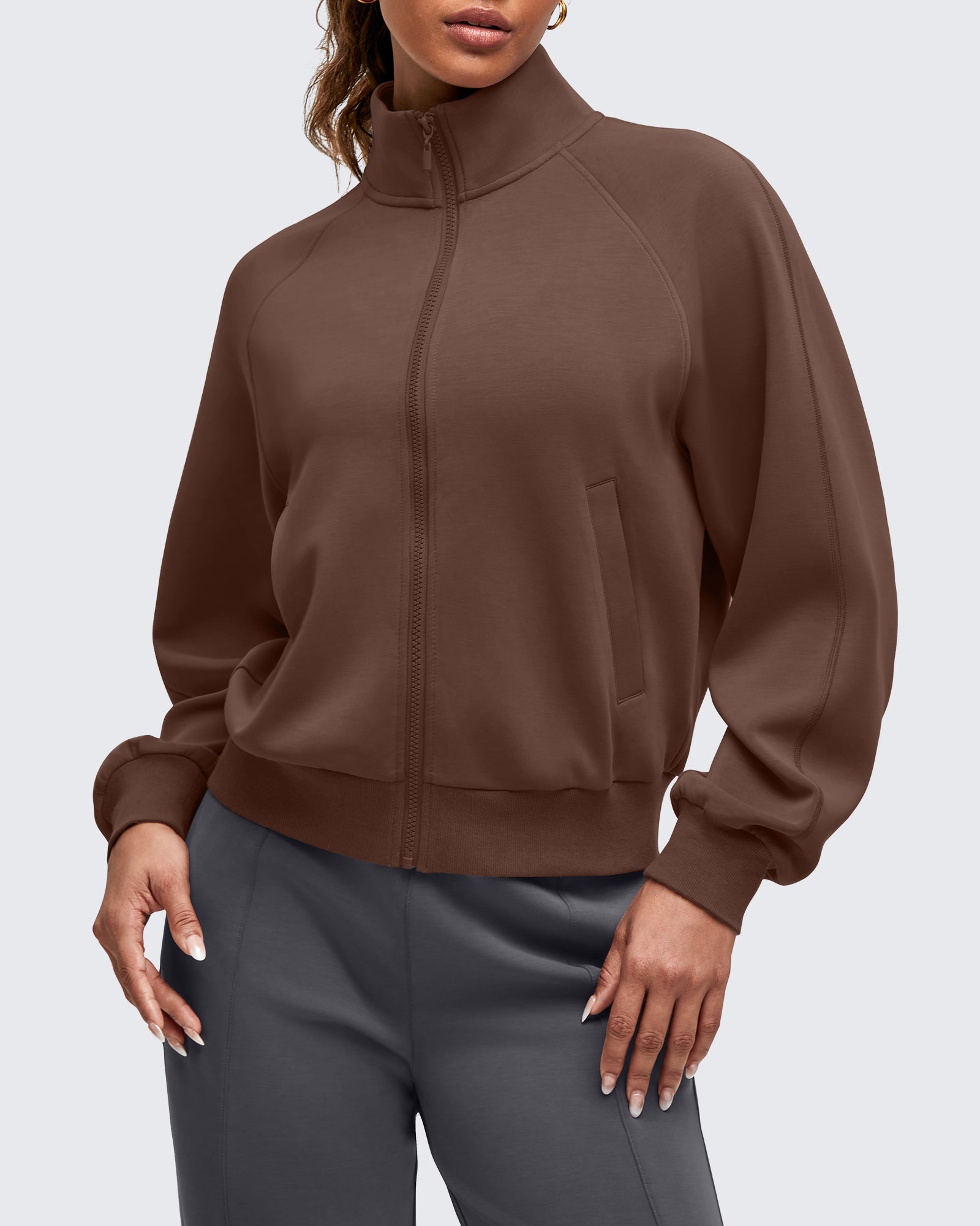 Smoofit Mock Neck Zip Up Pockets Jackets