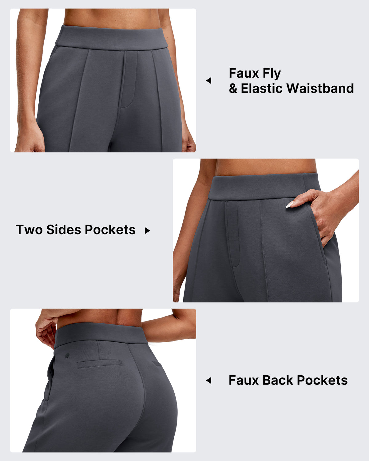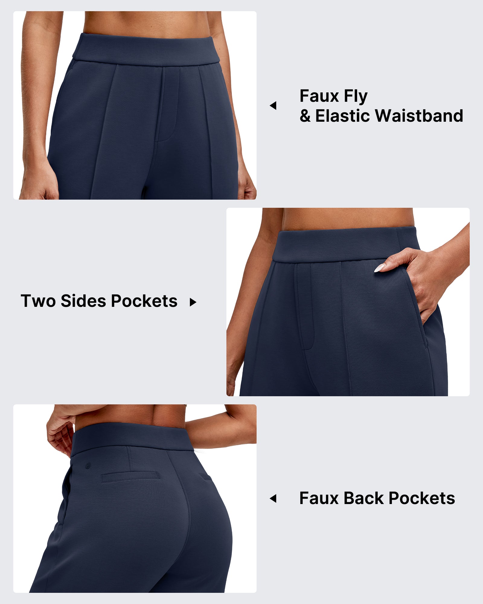 Smoofit Straight Leg Elastic High Waist Dress Pants