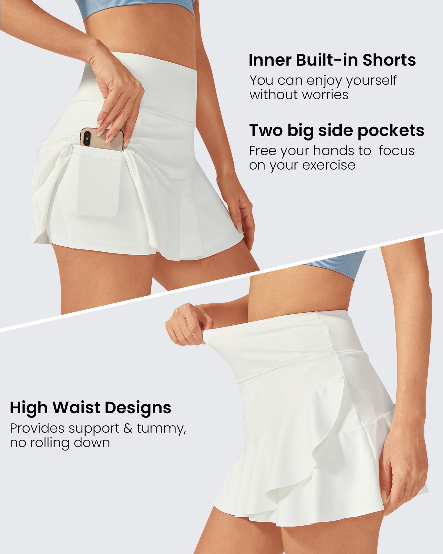 - Built-in Short Liner- Design skirt outer and shorts inner, providing secure coverage