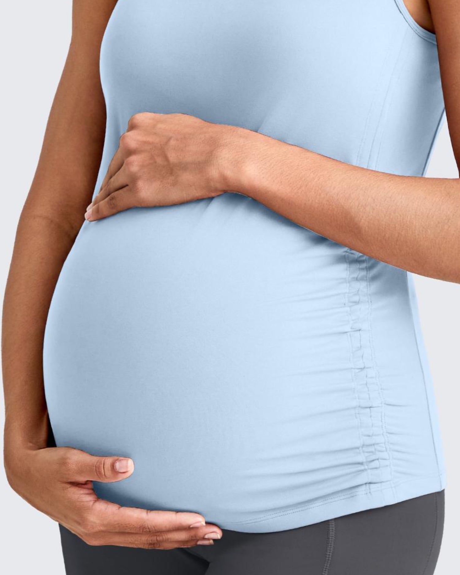 Bump-hugging comfort. Designed for your pregnancy journey—gentle stretch, and side ruching that grows with your bump