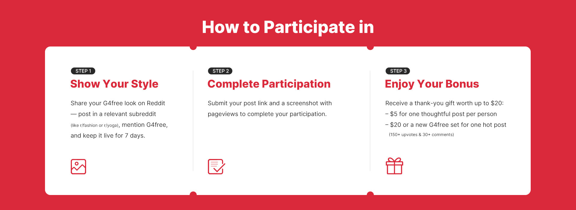 A3: After posting, make sure your post remains live for at least one week. Then, submit your Reddit post link along with a screenshot showing the pageviews to complete your reward claim.