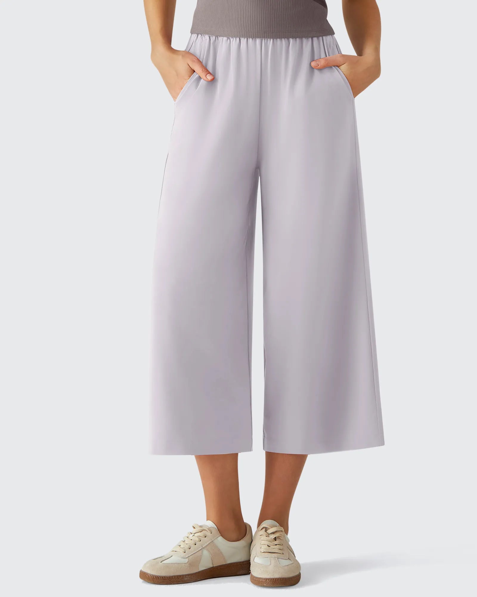Chillwhisp Elastic Waist Flowy Wide Leg Capri Pants 20''
