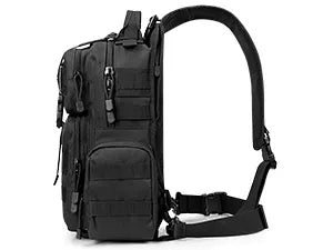 - HUMANIZED DESIGN& MULTIFUNCTIONAL---Tactical sling backpack has an adjustable and comfortable padded single shoulder straps and also has added waist strap to keep the bag from swinging around your body as you move with it or bend down. Equipped with Molle Webbing and front load compression system Y strap for expansion. Perfect sling pack for the gunman. You can use the small tactical backpack as an EDC sling pack, chest bag, handbag, tactical, pouch, first-aid kit, a diaper bag, and so on.