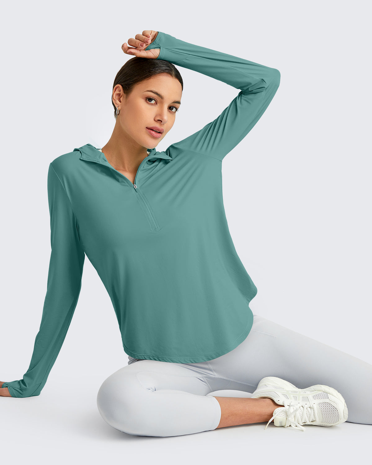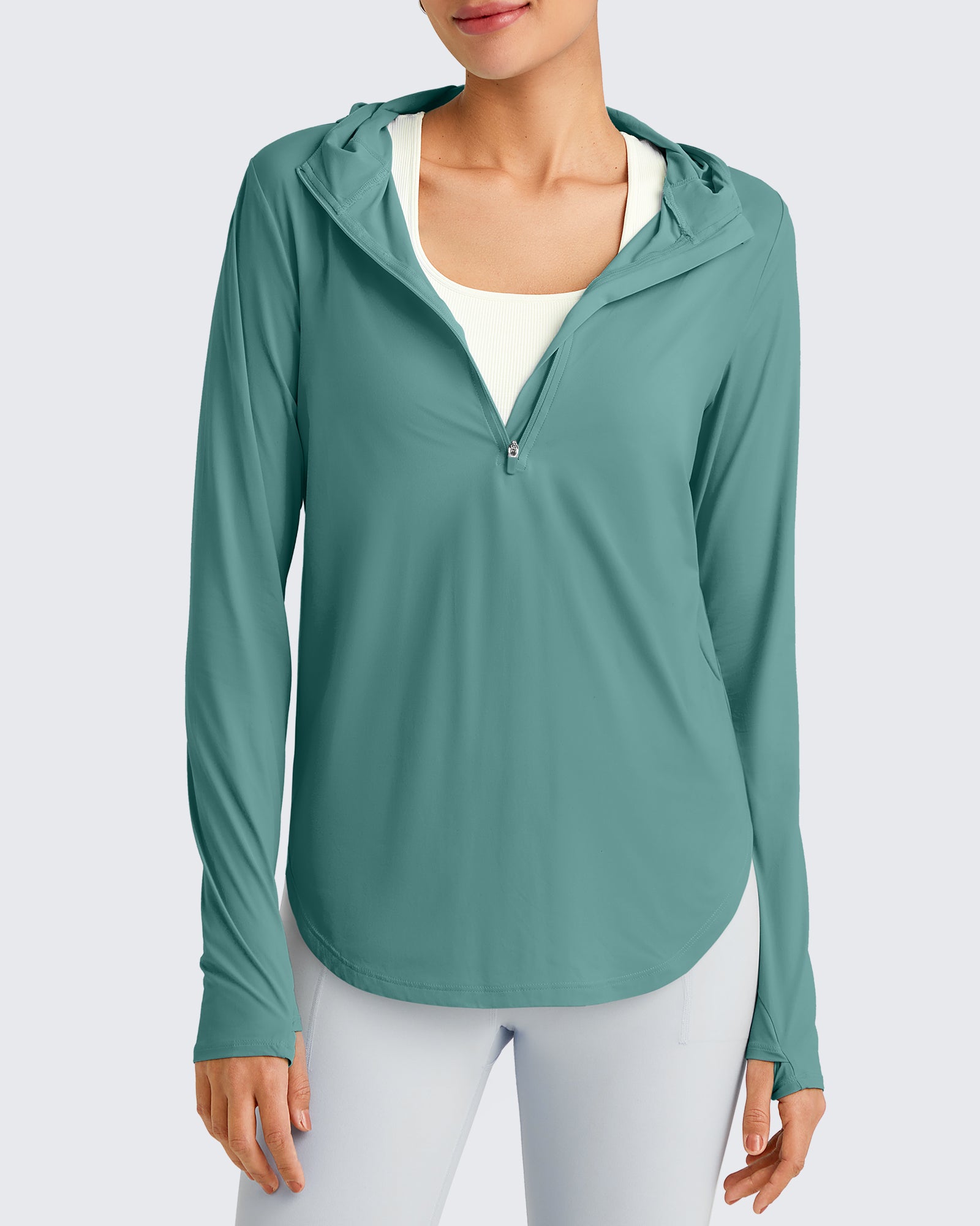 - Half Zip Hoodies Shirts offer more look options, thumbholes keep sleeves in place while working out